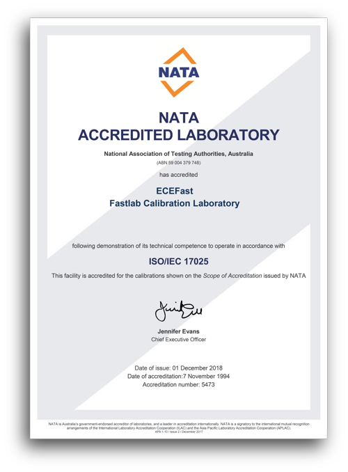 At ECEFast, we provide traceable, and accredited calibration services. Our accreditation by NATA to ISO 17025 ensures that our services are of the highest quality and reliability.